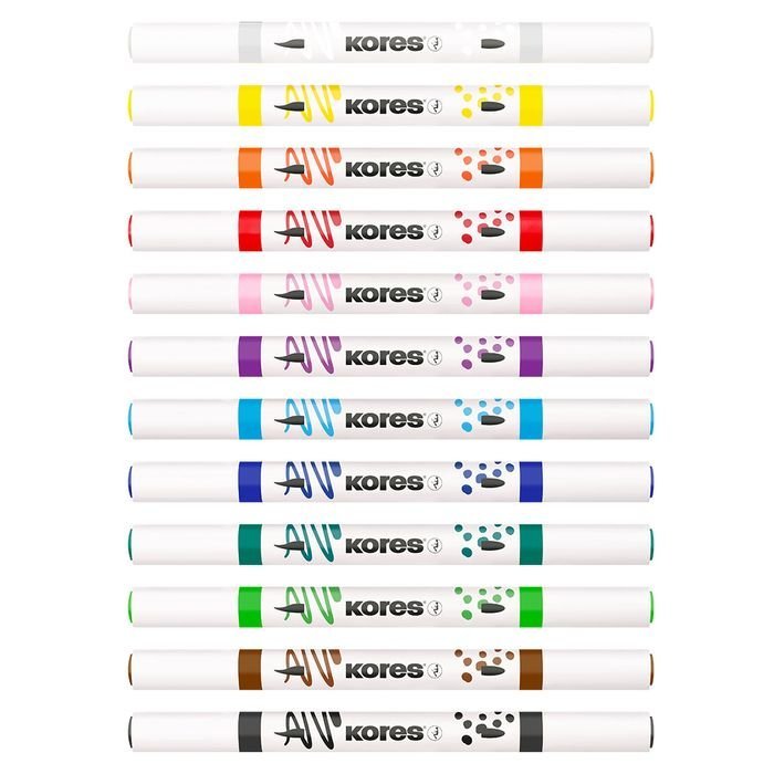 Nekonečné možnosti kreativního tvoření s akrylovými popisovači Kores, které kombinují štětcový a kónický hrot. Jsou ideální pro kreslení, psaní i práci s jemnými detaily. Připravený k použití ihned, bez protřepávání.