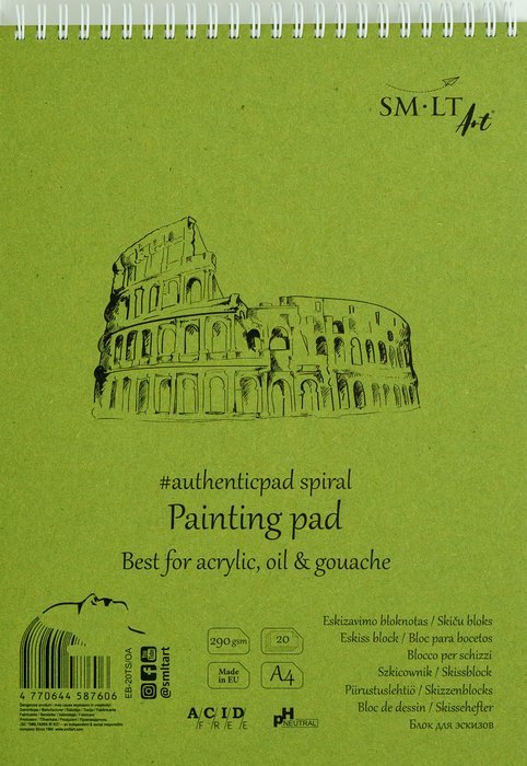 Blok A4 s bílým „strojním“ hrubým papírem na bázi celulózy. Obsahuje 20 listů o gramáži 290 g/m2. Nejlepší pro olejové a akrylové kresby. Vnitřní papír neobsahuje kyseliny, je pH neutrální a má certifikát FSC. S obalem z přírodního kartonu, tvrdými hřbety, mikroperforovanými listy a spirálou na horní straně.