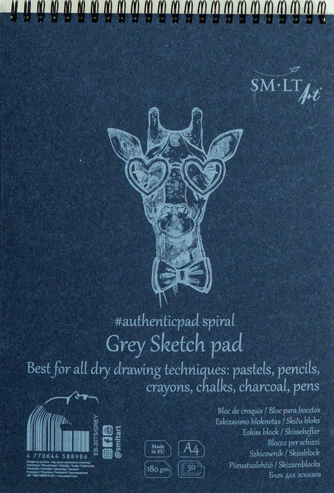 SMLT art Blok Authentic, šedý, A4, 30 listů, 180g/m2, spirála