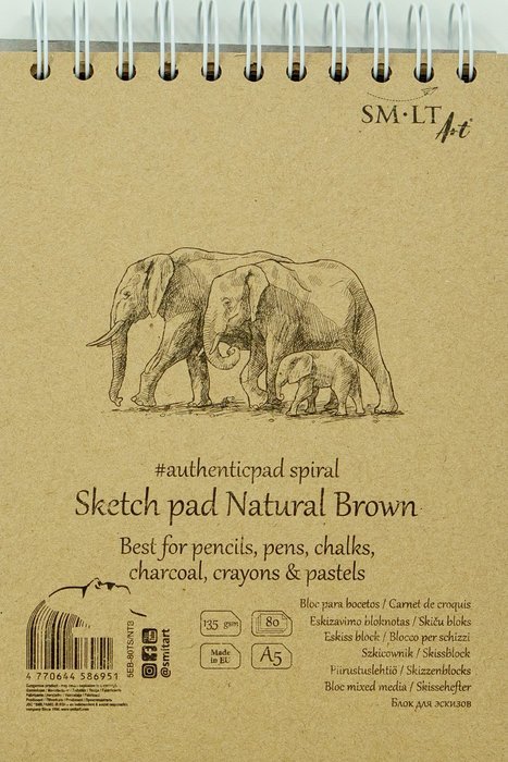 SMLT art Blok authentic, skicák přírodí hnědý A5, 80 listů, 135g/m2, spirála