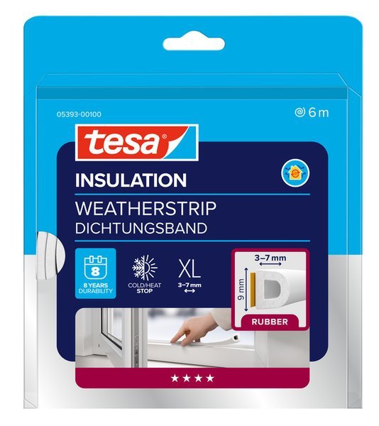 Samolepicí gumové těsnění tesa® IZOLAČNÍ je praktickým řešením pro netěsnící okna a dveře. Chrání před chladem, teplem, hlukem i vlhkostí a přispívá k příjemnému prostředí v obytných místnostech. Instalace je snadná – není potřeba žádné nářadí, stačí nůžky. Těsnění utěsní mezery o velikosti 3–7 mm mezi rámem a křídlem okna. Vhodné pro většinu typů oken a dveří.